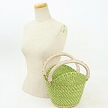 ボルガバスケット 丸底 山 チェック柄 ペールグリーン ナチュラル革