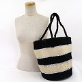 【SALE】アクリルプラスチックサイザルバッグ共手10x11 ボーダー 黒x生成xプラチナ @7500→4000