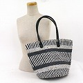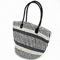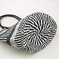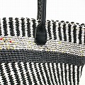 プラスチックサイザルバッグ9x10 丸革ハンドル黒 伝統柄 黒x白xシルバーxグレー