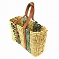 ストローカゴ 小 平革ぐるりハンドル 柄2 緑