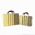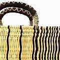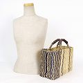 ストロー四角カゴ革ハンドル 小 柄1黒
