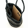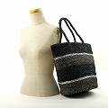 アクリルシルバーサイザルバッグ10x12共手 MIXハンドル MIX細スト黒x生成xグレーxシルバー