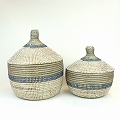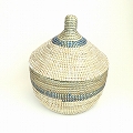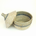セネガル 蓋付きカゴ 三色ボーダー 白グレー紺 大