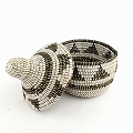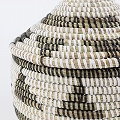 セネガル 蓋付きカゴ 三角柄 白黒 小