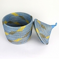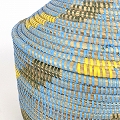 セネガル とんがりふた付きカゴ 段々柄 サックス 大
