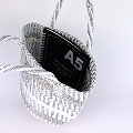 プラスチックサイザルバッグ0x11共手丸底 スタンディングストライプ クリアxプラチナx白
