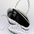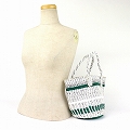 プラスチックサイザルバッグ0x11共手丸底 スタンディングストライプ 緑xシルバーx白