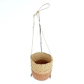 ボルガバスケット 丸底 2トーンストライプ 革ショルダー サーモン