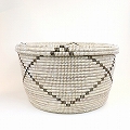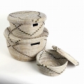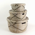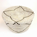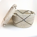 セネガル 蓋付き筒型カゴ クロスモチーフ 白黒 大