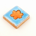 チュニジア小タイル無地 四角花 空色・オレンジ