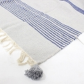 ポンポンコットンラグ グレーx青 一点物