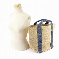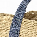 ラフィアかぎ編みバッグ 正方形トート ナチュラルx持ち手青