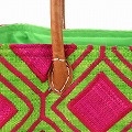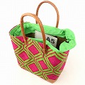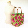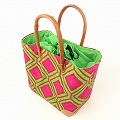 ラフィアラバンカゴ ハチの巣柄 中 ピンク黄緑