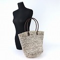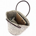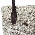 羊毛サイザルバッグ10x12 丸革ハンドル焦げ茶 ミックスグレー