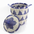 セネガルカゴ 三角段々柄 白紺