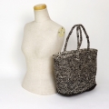 オール羊毛サイザルバッグ共手13x6x10 楕円底 ミックス 焦げ茶x生成