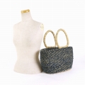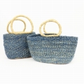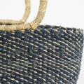ボルガ楕円底バスケット インディゴ古布ミックス 水草ハンドル