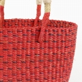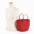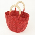 ボルガ楕円底バスケット ドッド柄 赤黒 小 ナチュラル革ハンドル