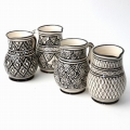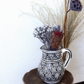 陶器ピッチャー型フラワーベース ぷっくり SALAH H15 黒 柄E