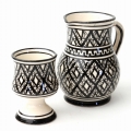 陶器 飾りワイングラス型コップ SALAH W6.5 H10 柄E
