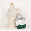 プラスチックかぎ編みバッグ共手8x9 透かし 白x緑xプラチナ