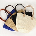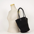 サイザルバッグ8x10 オキクフォルム 丸革ハンドル黒 黒