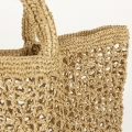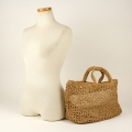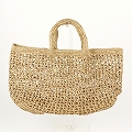 ラフィアかぎ編みバッグ 横長透かしおじぎ 紅茶