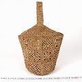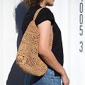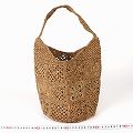 ラフィアかぎ編みバッグ 丸底 四角パッチワーク 紅茶
