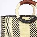 水草カゴ 柄たて切替 黒NAT ラフィアハンドル
