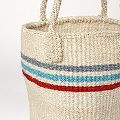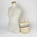 サイザルバッグ共手8インチ 細ボーダー 生成 ピンクxミントxグレー