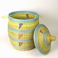 セネガル蓋付きカゴ ストライプ三角柄 大 レモン水色