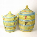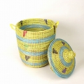 セネガル蓋付きカゴ ストライプ三角柄 小 レモン水色