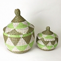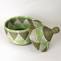 セネガルカゴ 三角柄 大 カーキ白黄緑