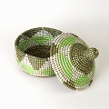 セネガルカゴ 三角柄 小 カーキ白黄緑