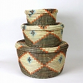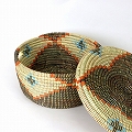 セネガル蓋付きペッタリカゴ クロス柄 中 黒アイボリーオレンジ