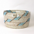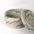 セネガル蓋付きペッタリカゴ 段々柄 大 白水色