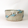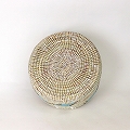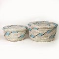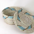 セネガル蓋付きペッタリカゴ 段々柄 中 白水色
