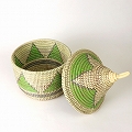 セネガルとんがりカゴ 三角山柄 小 アイボリー黄緑グレー