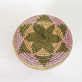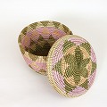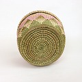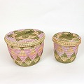 セネガル蓋付き筒カゴ ジグザグ柄 大 サーモンモス薄ピンク