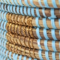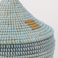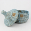 セネガル 蓋付きカゴ ラメ糸四角モチーフ サックスゴールド 大