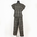 【受注】泥染フレンチスリーブシャツ 後ろボタン 黒地白線