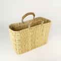 ストロー四角かご革クロスステッチハンドル M カフェオレ
