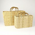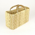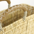 ストロー四角かご革クロスステッチハンドル S カフェオレ