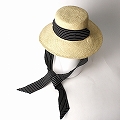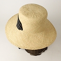 ラフィアトレッセ帽子 平クラウン 2穴 つば9 リボン付