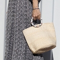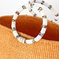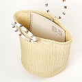 サイザルバッグ9インチ ビーズリングハンドル大白マルチ オレンジ