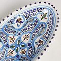 スラマ陶器 手描き浅皿楕円 D20 地中海風ターコイズ