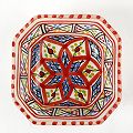 スラマ陶器 手描き八角形皿 D10 赤