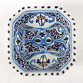 スラマ陶器 手描き八角形皿 D10地中海風ターコイズ