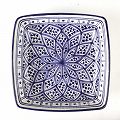 スラマ陶器 手描き四角深皿 18x18 パピヨンブルー