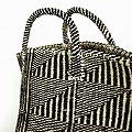 アクリルxサイザルバッグ共手12x10 ハンドル短 フラッグ 黒
